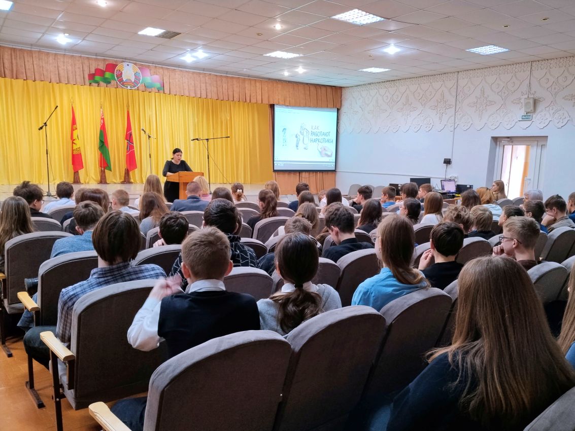 Филиал «Городская библиотека микрорайона Быхов-1» провела для учащихся ГУО «Гимназия г. Быхова» открытый диалог «В плену иллюзий» к Международному дню борьбы с наркоманией и наркобизнесом с участием сотрудника милиции Быховского РОВД Калеевой Анастасией Сергеевной.