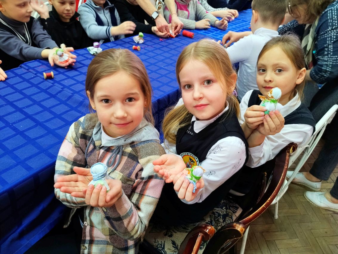 А в заключение программы чучела, конечно, не сжигали, но ребята смогли поучаствовать в мастер-классе, где каждый смог сделать своими руками куколку-Масленичку, которая будет радовать маленького хранителя и напоминать о замечательном народном празднике.
